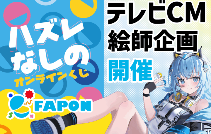 VTuber事務所として初となる自社オンラインくじ『FAPON』は、初の自社広告としてのテレビCMを放映することが決定!そのCM動画へ作品を掲載権を用意した絵師向け企画を展開いたします。
